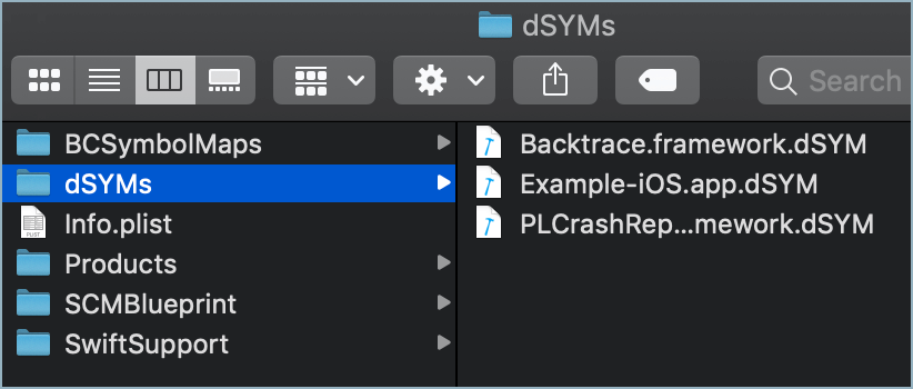 - Zip all the dSYM files and upload to Backtrace.