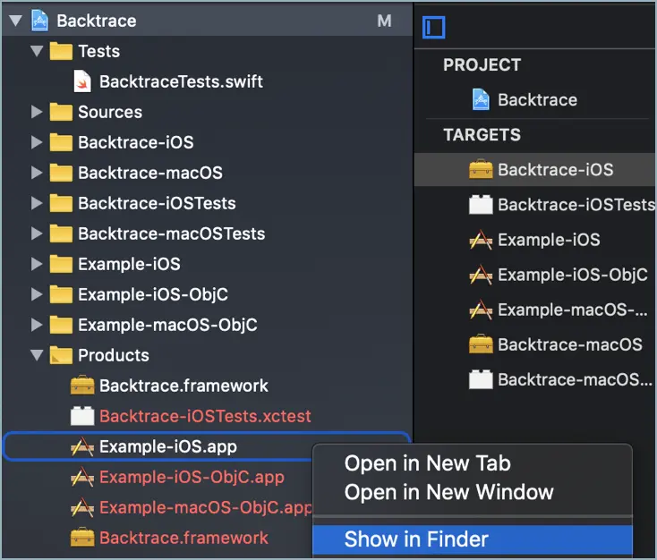- Add Backtrace to your target’s Frameworks, Libraries, and Embedded Content.