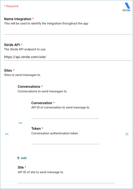 To set up integration with Stride an app token must be generated for each conversation that messages are going to be sent to.